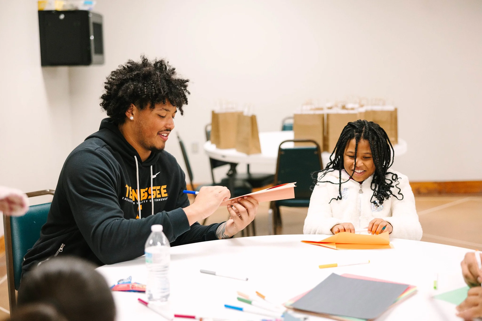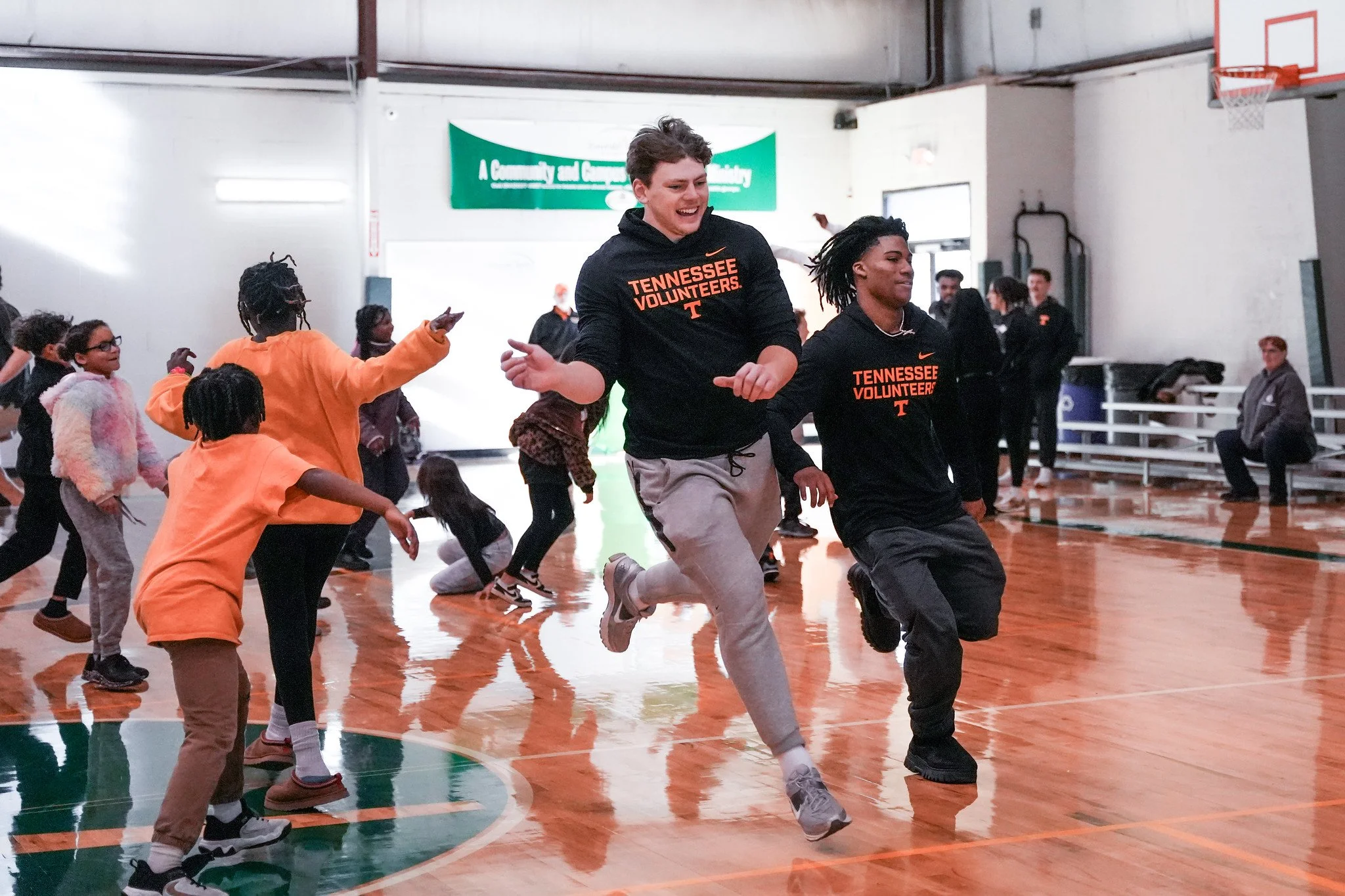 We also welcomed a special group of “volunteers” as Tennessee Football players spent time with young people doing a creative service project for East Tennessee Children’s Hospital, hearing a message on the life of Dr. King and enjoying some friendly competition through games and exercise. See the pictures below, and check out this Instagram Reel for more highlights.